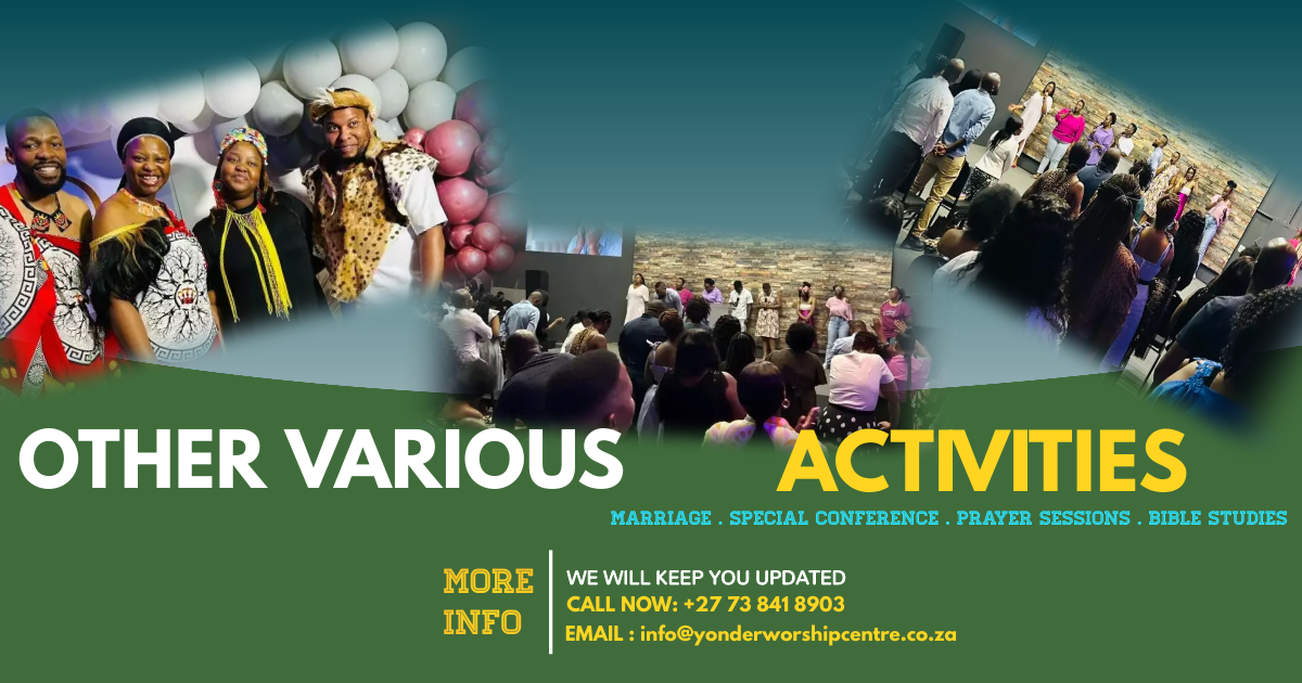 We also have online prayers every tuesday, for prayers requests please contact +27 73 841 8903 and join us as we pray together as the Bible has instructed us in Matthew 18:20